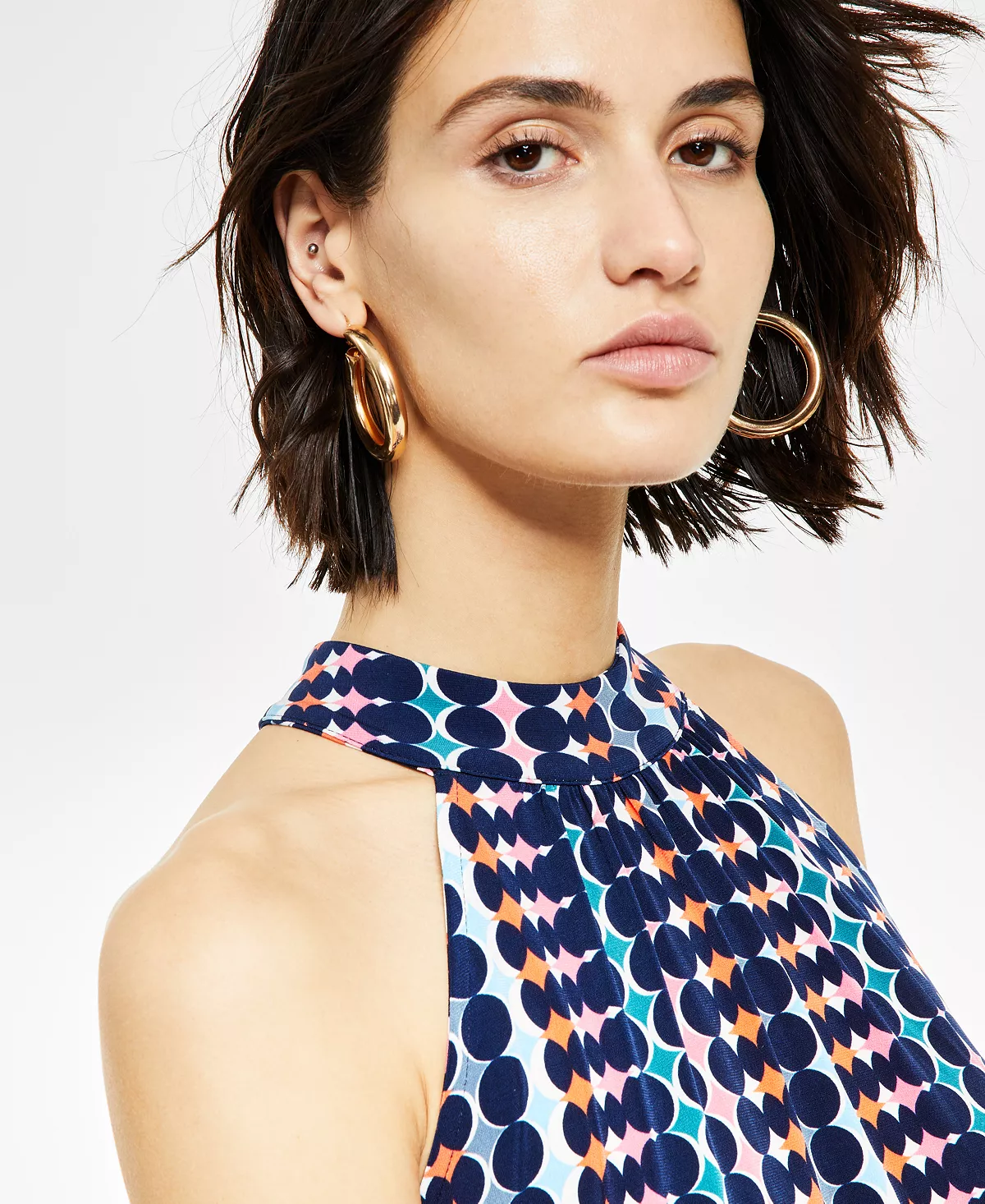 Accomplished style from Bar III, this dress is featured in dynamic prints and finished in a shift design for a figure-flattering silhouette.