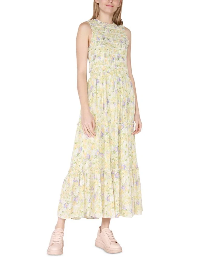 A pretty pick from Black Tape, this floral-inspired maxi dress features ruffled trim and a smocked bodice for a uniquely beautiful silhouette.