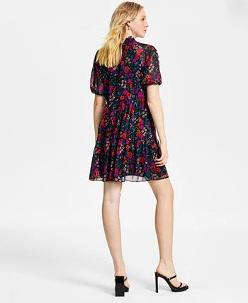 Playful puff sleeves frame the sides of CeCe’s adorable babydoll dress, a charming floral-print piece accented with a tiered pleated skirt.