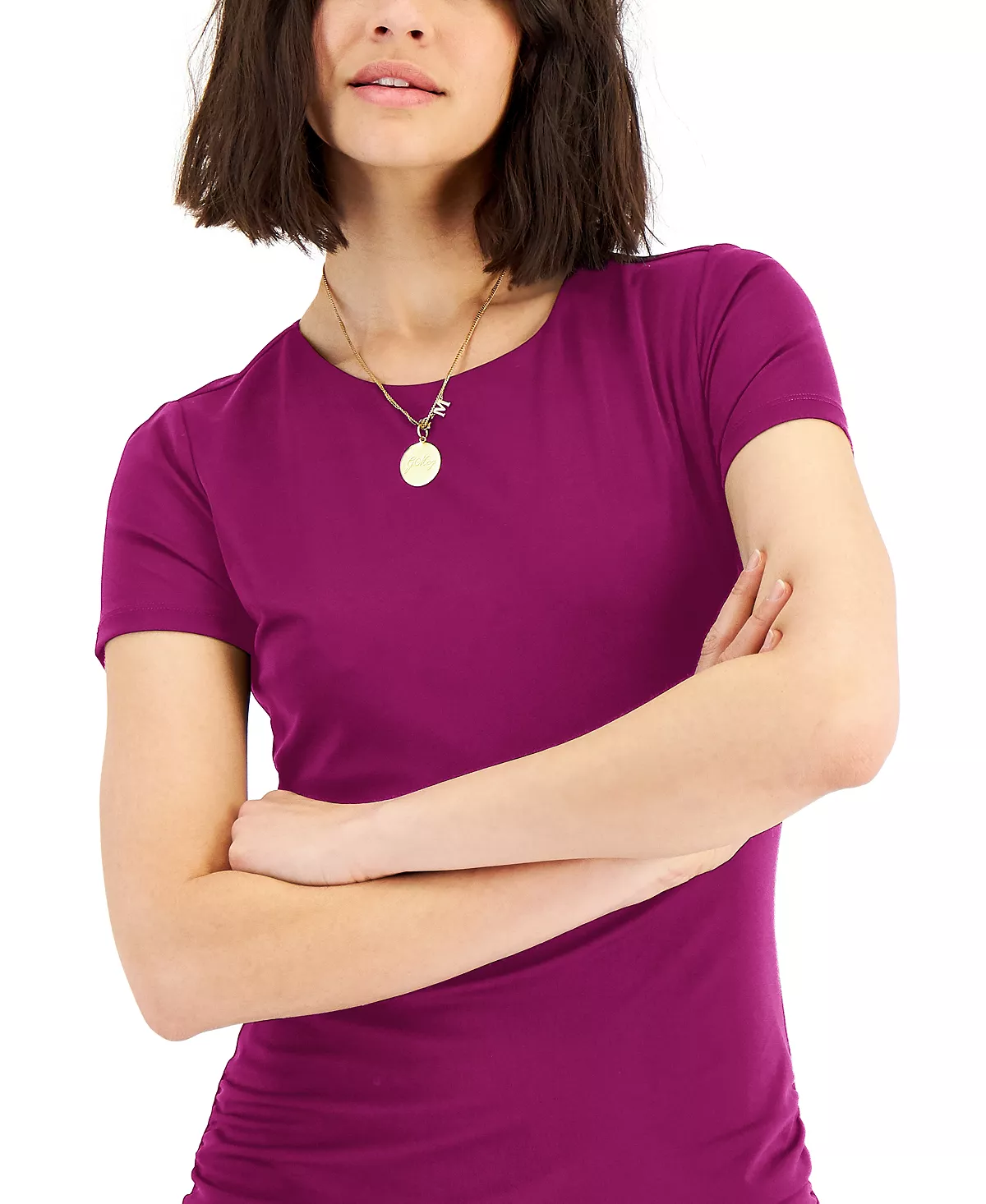 Steam up your date night look in this ruched mini dress from INC International Concepts®, featuring a faux-wrap design.