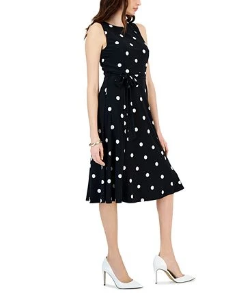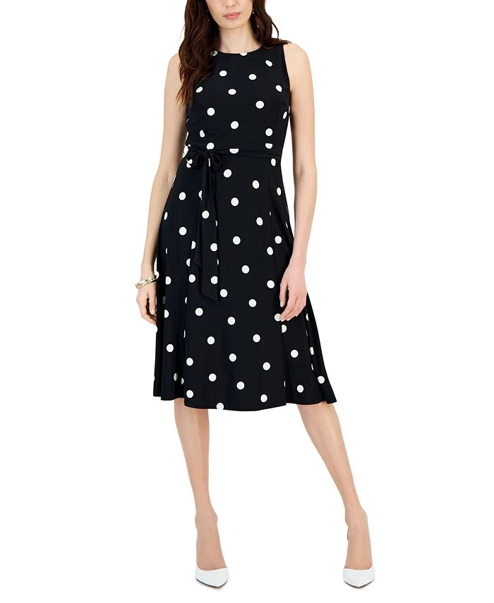 Polka dot print refreshes your wardrobe while the fit and flare silhouette of this Kasper dress conceals and reveals in all the right to places to flatter your figure.