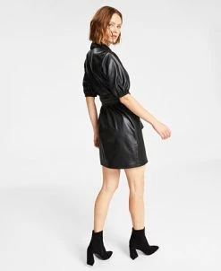 Bar III Women’s Faux-Leather Faux-Wrap Dress, Created For Macy’s