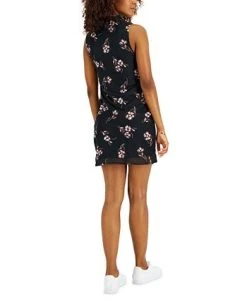Bar III Women’s Printed Sleeveless Cutout Mock-Neck Mesh Mini Dress, Created For Macy’s