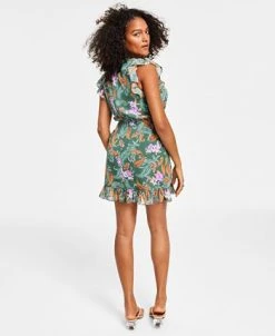 Bar III Women’s Printed V-Neck Ruffle Dress, Created For Macy’s