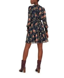 INC International Concepts Hiffon Printed Blouson-Sleeve Fit & Flare Dress, Created For Macy’s